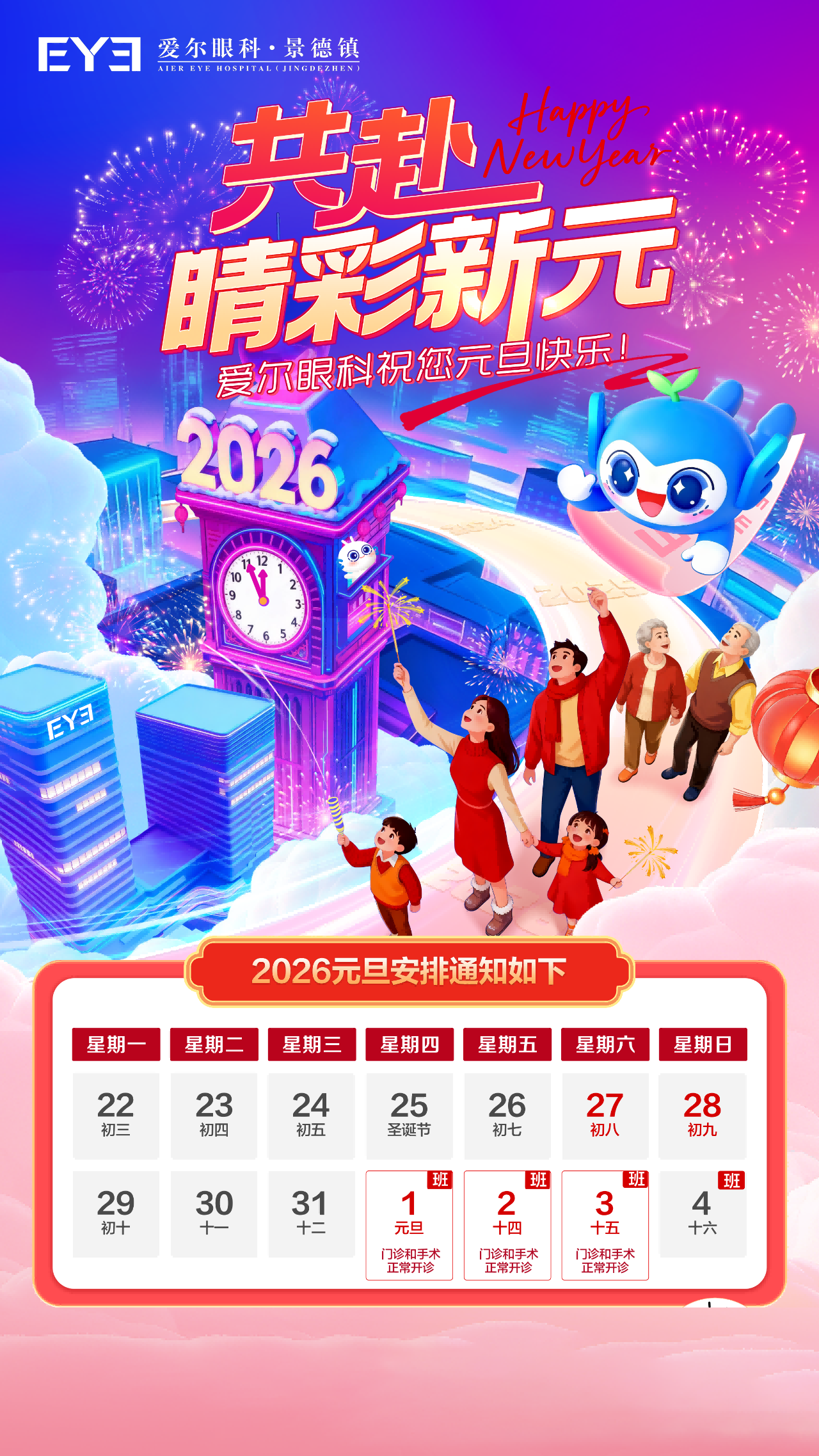 景德镇爱尔眼科医院元旦不放假,正常接诊!